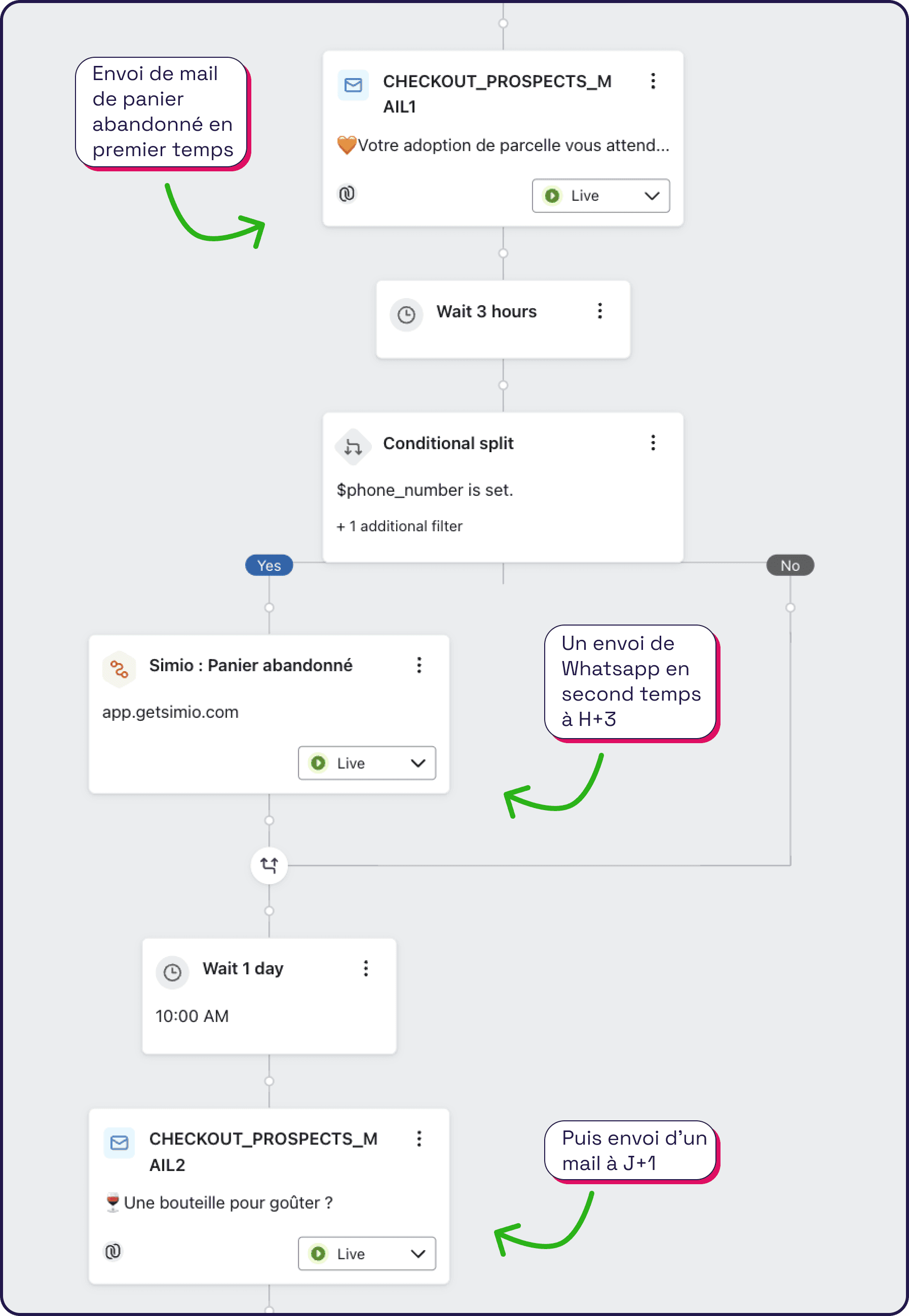 Une automatisation comme ça c’est en moyenne 2x plus de paniers récupérés par rapport au simple mail.